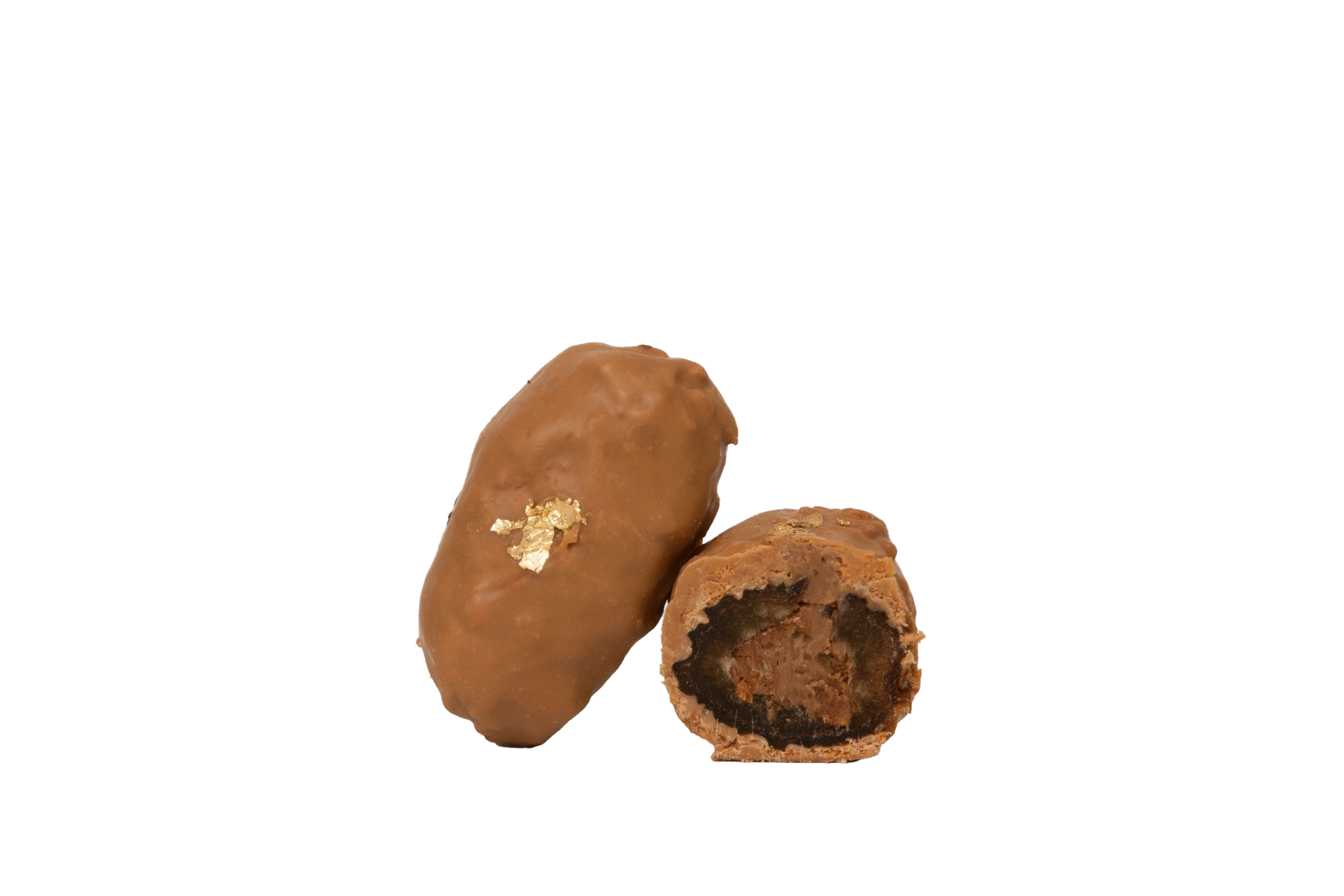 Dattes Medjool au cœur de crème cappuccino croustillante, enrobées de chocolat blond dulcey