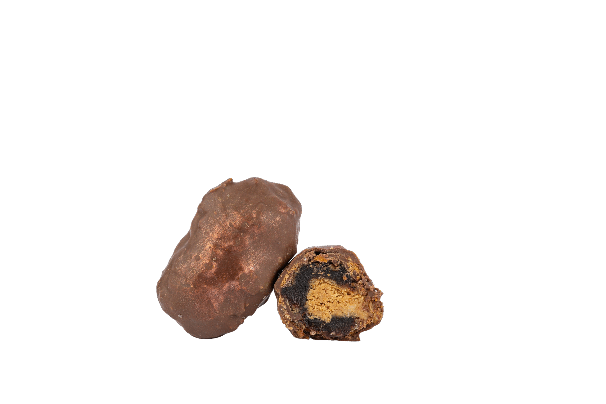 Dattes Medjool au coeur de crème onctueuse Spéculoos, mêléeà un croustillant de kunafa dorée, enrobées de chocolat au lait croquant