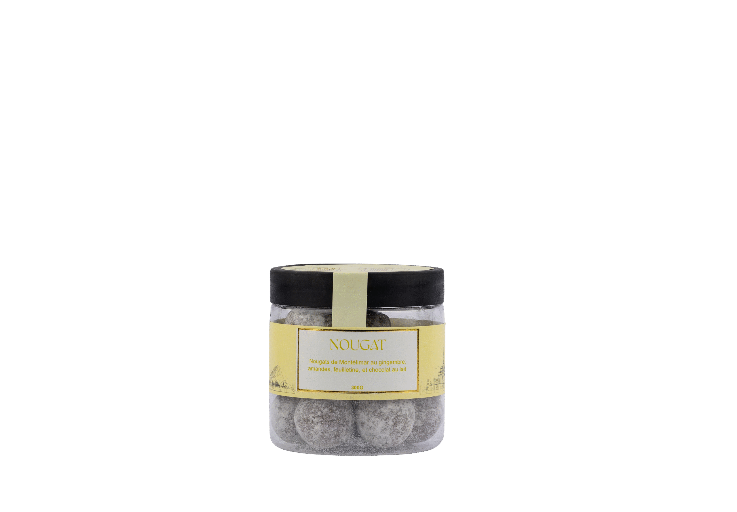 Nougats de Montélimar au gingembre, aux amandes grillées et à la feuilletine, délicatement enrobés de chocolat au lait 300g