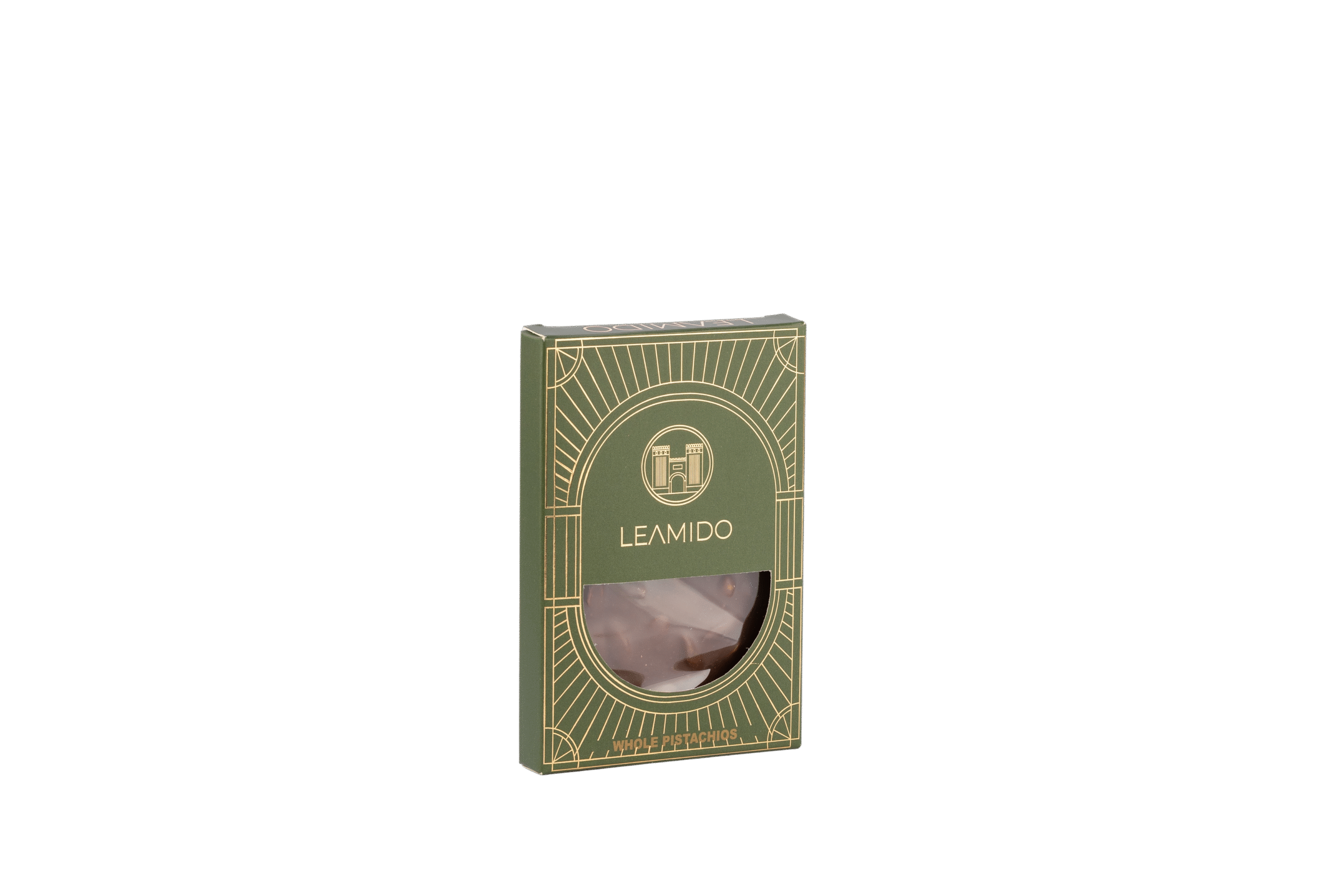 Tablette de chocolat au lait, sublimée par des pistaches entières torréfiées 80 DH